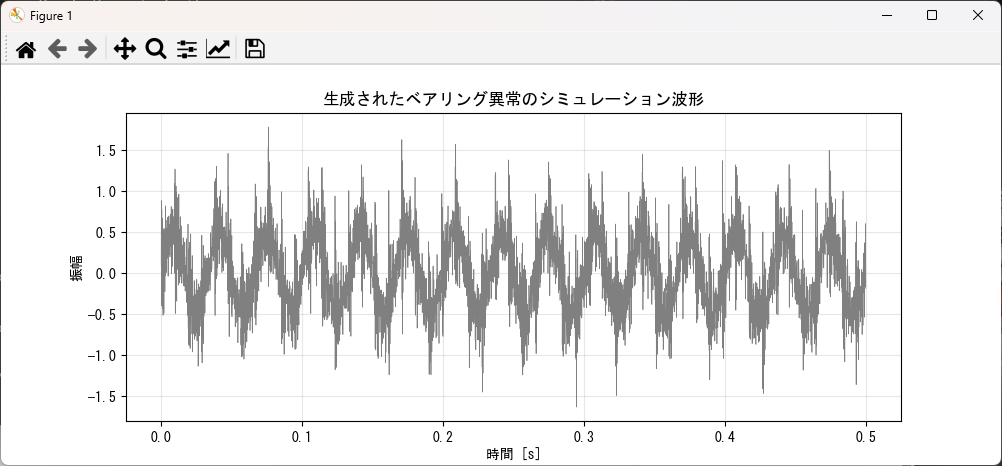 このプログラムは、実際のベアリング故障で発生する「物理現象」を忠実に再現するように設計しています。