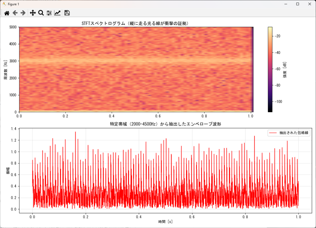 そんな時に有効なのが、以前の記事でも触れたSTFT(短時間フーリエ変換)とエンベロープ解析の組み合わせです。