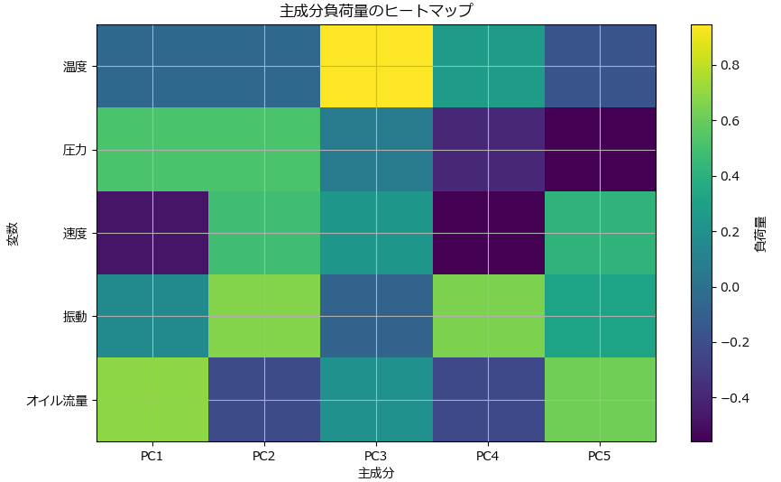 製造ラインや設備のモニタリングにおいて、異常検知は重要な課題です。PCAを用いることで、通常のデータから逸脱する異常点を発見できます。具体的な例として以下が挙げられます。